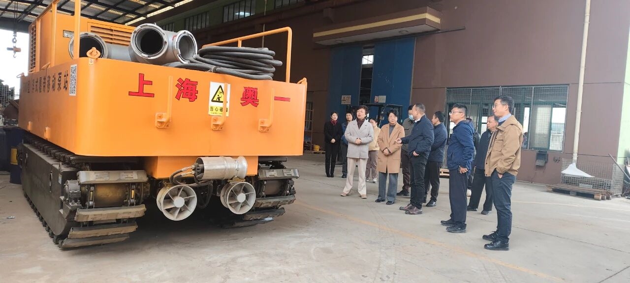 民建金山区委主委兼松江区副区长叶文娣率金山区委一行及金山水务局局长戴宏辉领导一行考察组重点查看了应急抢险防汛排涝便携泵、大流量排涝机器人、强自吸排涝机器人、大流量移动排水泵车、5000立方 水陆两栖多功能浮式履带移动泵站、应急消防增压供水机器人等主力防汛装备的建设情况,并详细听取了关于奥一防汛救援队组织架构、专业训练与应急响应机制的专题汇报。公司负责人介绍,目前已形成“特色装备+专业队伍”一体化的实战型防汛力量,确保在应急抢险中能实现快速响应、高效处置。